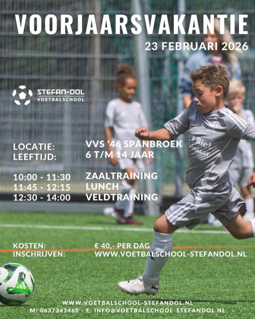 In de voorjaarsvakantie organiseren wij op maandag 23 februari een voetbal 1-daagse bij VVS’46 in Spanbroek.